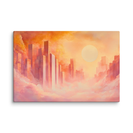 Peinture Aquarelle Ville – Vision Urbaine au Coucher du Soleil