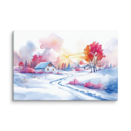 Peinture Aquarelle Paysage de Neige - Douceur Hivernale