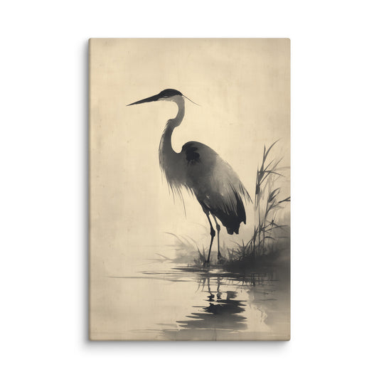 Sumi e Héron – Nature immobile et vigilance naturelle