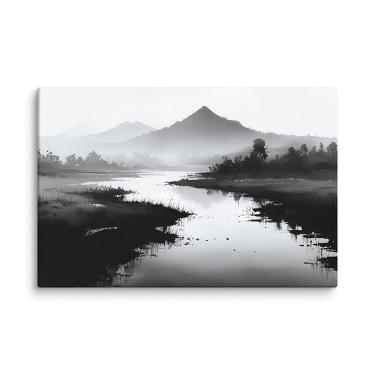 Sumi e Paysage - Rivière silencieuse et horizon contemplatif