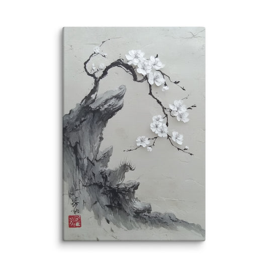 Sumi e Branche de Prunier – Résilience délicate et floraison