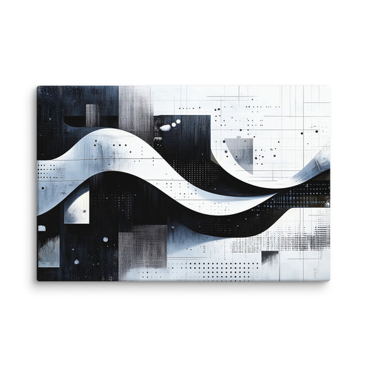 Tableau Peinture Huile Noir et Blanc : Géométrie Ondulatoire