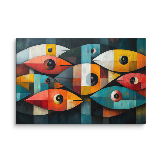 ⚡️ Promo ⚡️Tableau Poisson Abstrait : Banc Cubiste