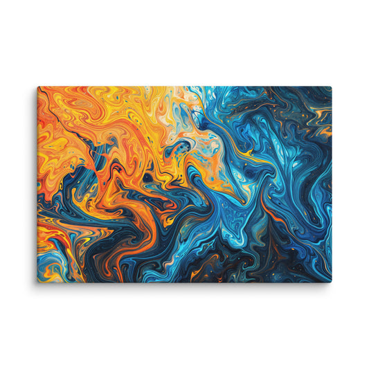 Tableau Abstrait Orange et Bleu - Dynamisme Contemporain
