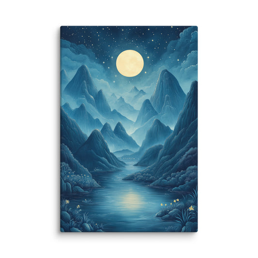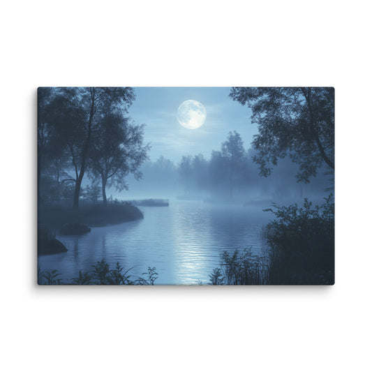 ⚡️ Promo ⚡️Tableau Paysage Bleu - Lune sur le Lac