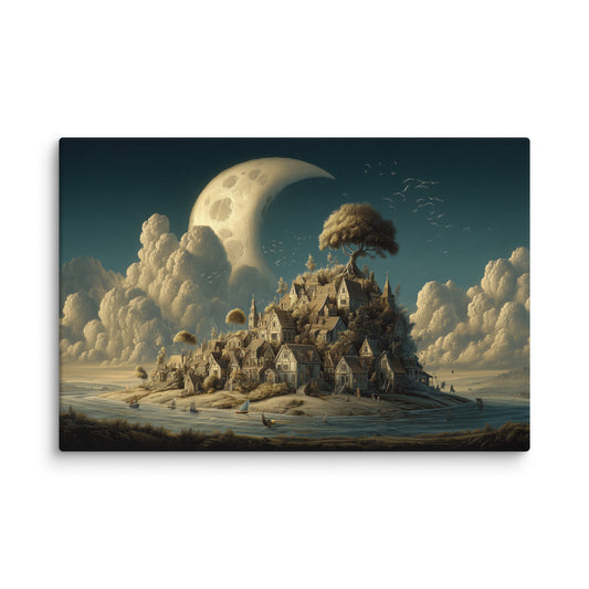 Tableau surréaliste Le Village sous la Lune