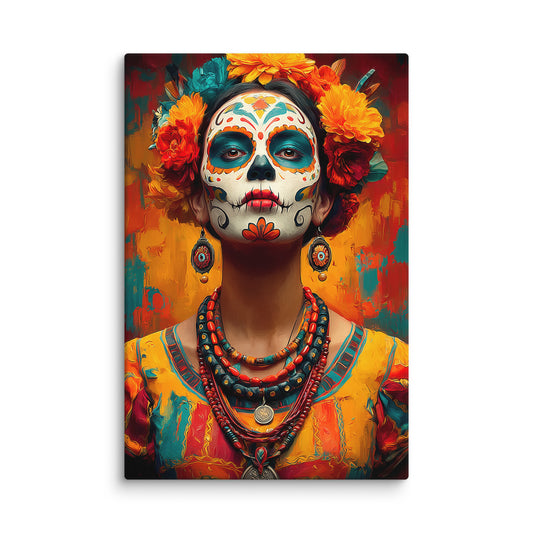 Toile Tête de Mort Mexicaine Femme – Féminité Sacrée et Beauté Rituel