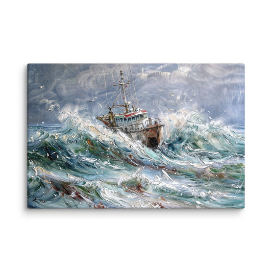 Tableau Peinture Bateau de Pêche - Mer Turbulente