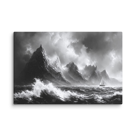 ⚡️ Promo ⚡️Tableau Noir et Blanc Mer - Tempête Clair-Obscur