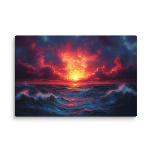 ⚡️ Promo ⚡️Tableau Mer Couchant : Symphonie Écarlate