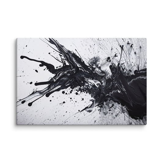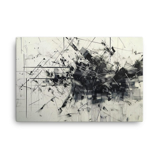 Tableau Noir et Blanc Abstrait Contemporain - Chaos Contrôlé