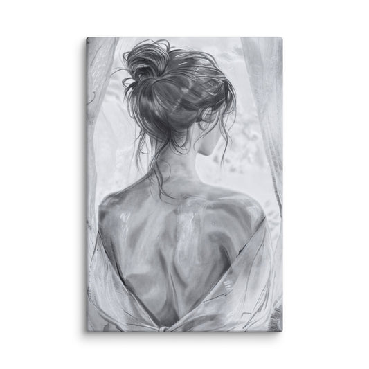 Tableau Femme de Dos Noir et Blanc - Élégance Éthérée