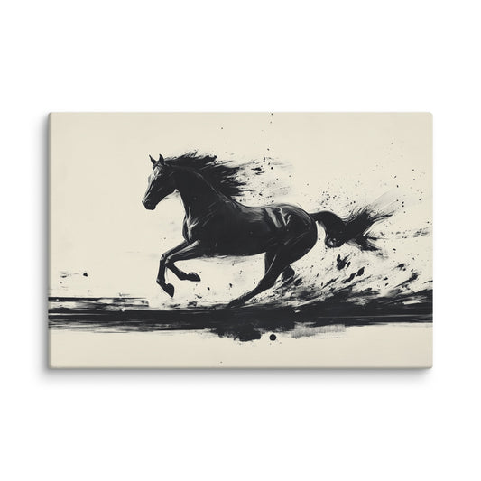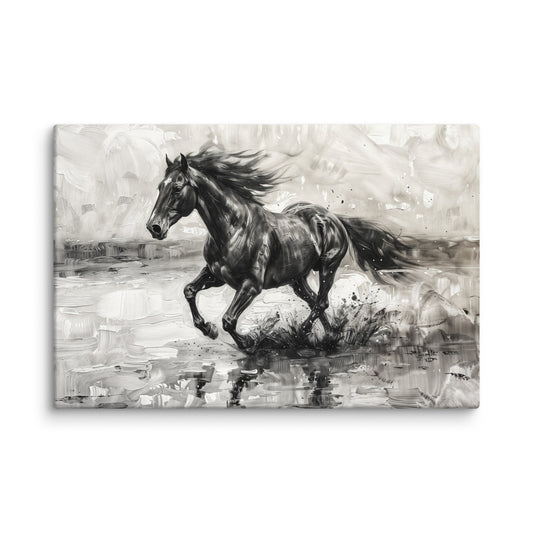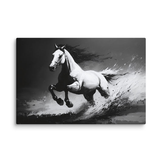 ⚡️ Promo ⚡️Tableau Cheval Noir et Blanc en Mouvement