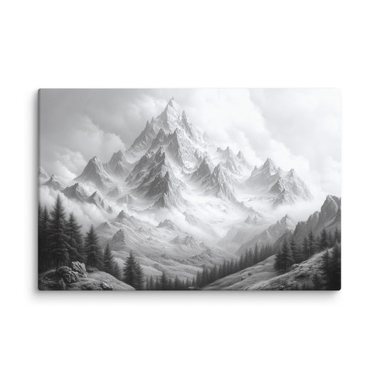 ⚡️ Promo ⚡️Toile Montagne - Dessin en Noir et Blanc