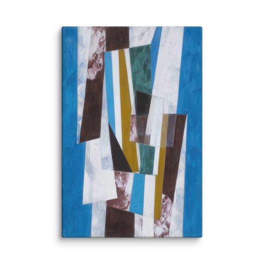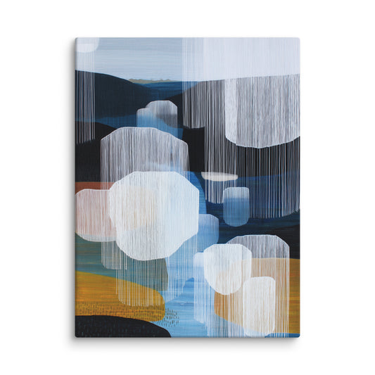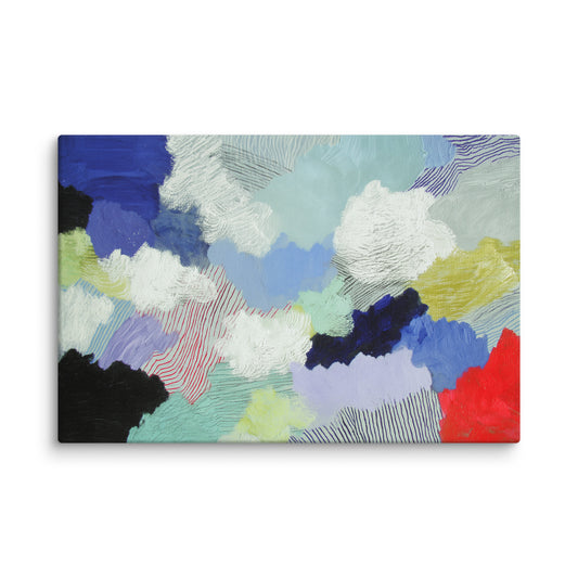 Toile Nuée boréale abstraite – pastel irisé et rainures cobalt