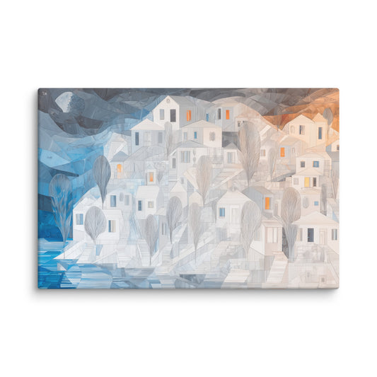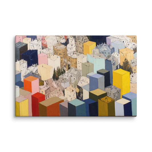 ⚡️ Promo ⚡️Toile Panorama urbain cubiste – blocs & toits