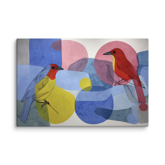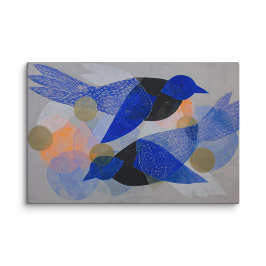Tableau Nordique 1 - oiseaux bleus et cercles scandinaves
