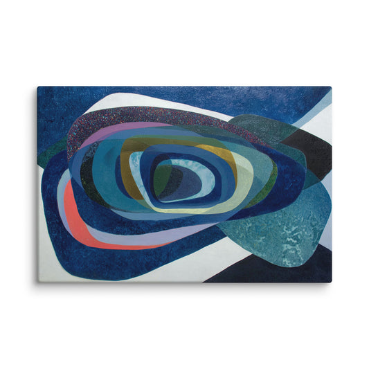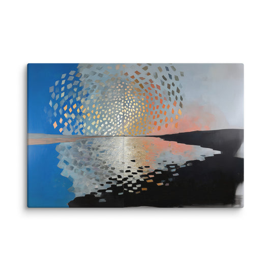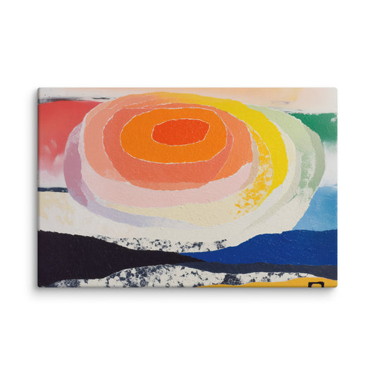 Toile Soleil boréal – anneaux corail et horizon cobalt