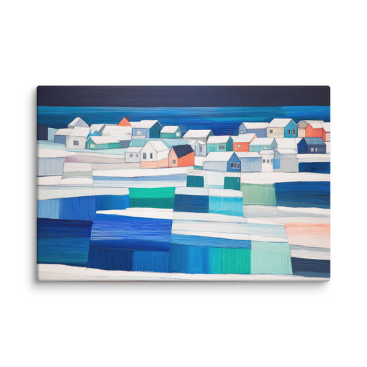⚡️ Promo ⚡️Tableau Village blanc sous la lune arctique