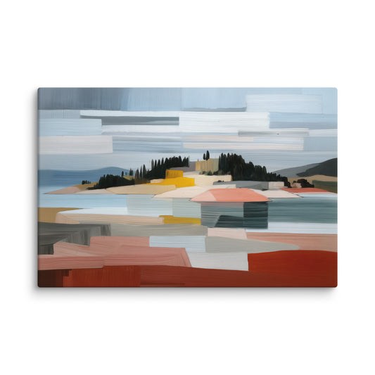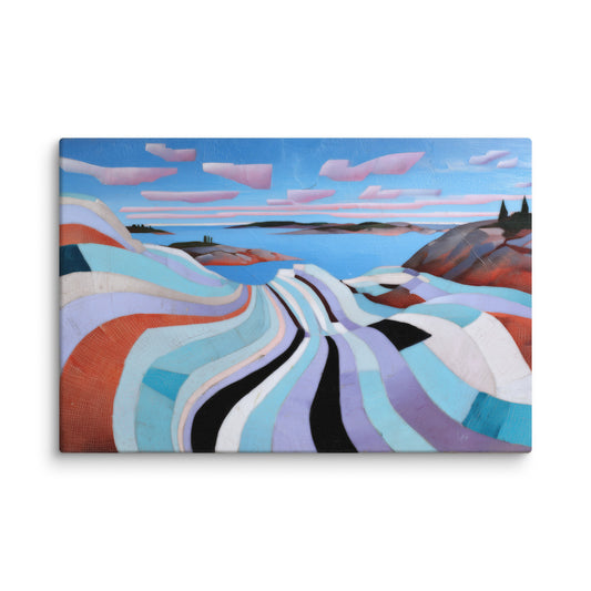 Tableau Fjord Pastel – rubans turquoise et corail au-delà des flots arctiques