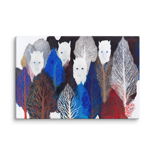Peinture Forêt crépusculaire mythique – silhouettes et ramures de givre