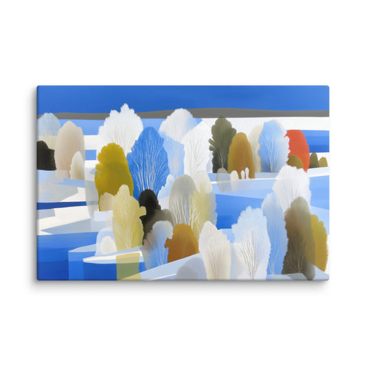 Tableau Forêt Scandinave – clairières d’azur & feuillages safran