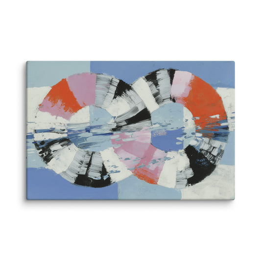 Tableau Boucles Infinies corail et azur scandinave – ritournelle polaire en mouvement