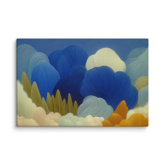 Composition Nordique 3 – nuages filamenteux cobalt et bruyère dorée