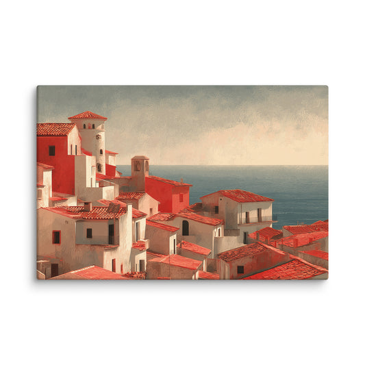 Tableau Village Mediterraneen aux Toits de Terre Cuite