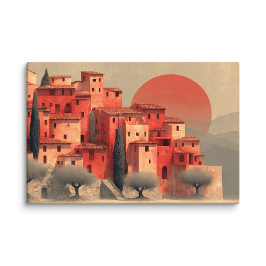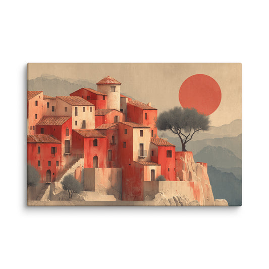 Toile Bourg Escarpé Méditerranéen – Citadelle d’argile face au soleil levant