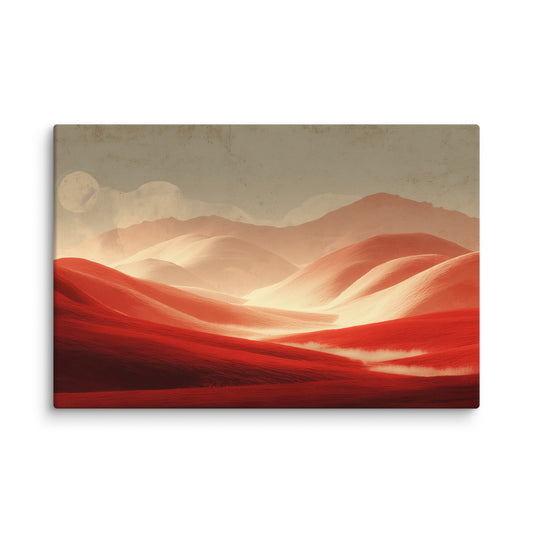 Tableau Vagues des Collines Terracotta – Ondulations carmin sur ciel minéral