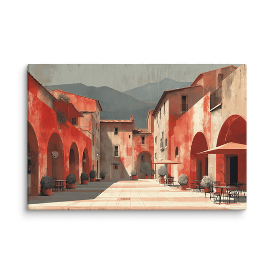 Toile Place Méditerranéenne aux Arcades Terracotta – Lueur solaire sur la piazza endormie