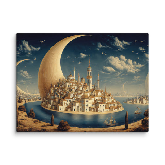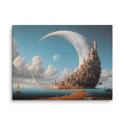 Tableau Cité des Croissants de Lune – Ville surréaliste sur l’eau