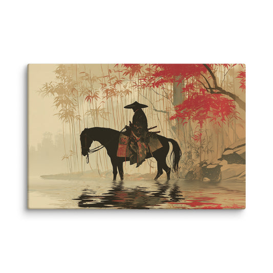 Tableau Samouraï à Cheval – Épopée d’Automne dans la Forêt de Bambous
