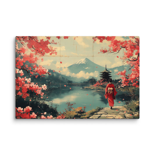 ⚡️ Promo ⚡️Tableau Japonais Vintage : Hanami au Mont Fuji