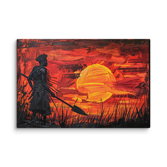 ⚡️ Promo ⚡️Tableau Guerrier Africain - au Crépuscule