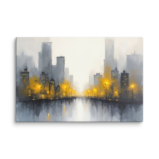 ⚡️ Promo ⚡️Tableau Salon Jaune : Reflets d'une Ville d'Or