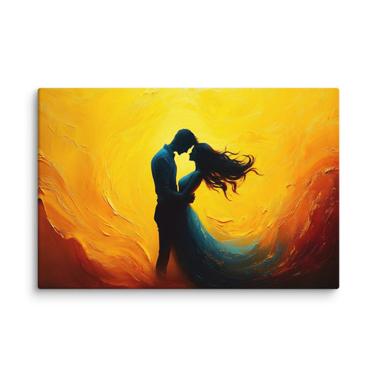 Tableau Amoureux Jaune : Danse au Soleil Couchant