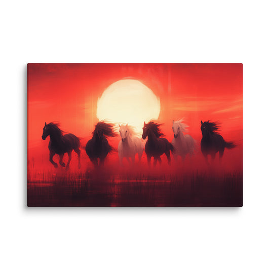 ⚡️ Promo ⚡️Tableau Rouge avec Chevaux - La Course Écarlate