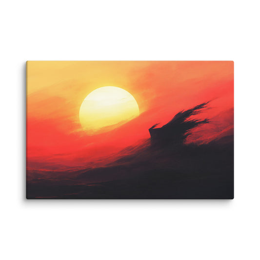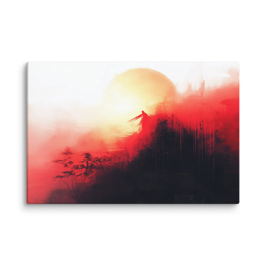 ⚡️ Promo ⚡️Tableau Contemporain Rouge : Silhouette à l'Aube