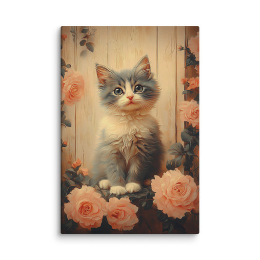 ⚡️ Promo ⚡️Tableau Chat Vintage - Charme Rétro aux Roses