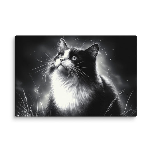 Tableau Peinture Chat Noir et Blanc - Rêverie Nocturne