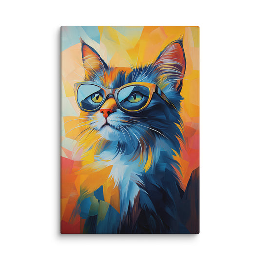⚡️ Promo ⚡️Tableau Chat avec Lunettes - Hipster Félin