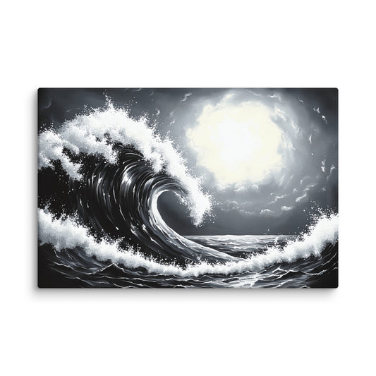 Tableau Vague Noir et Blanc : Puissance Océanique