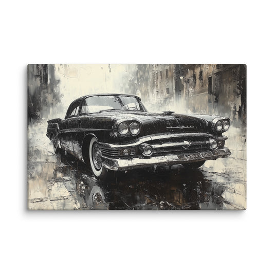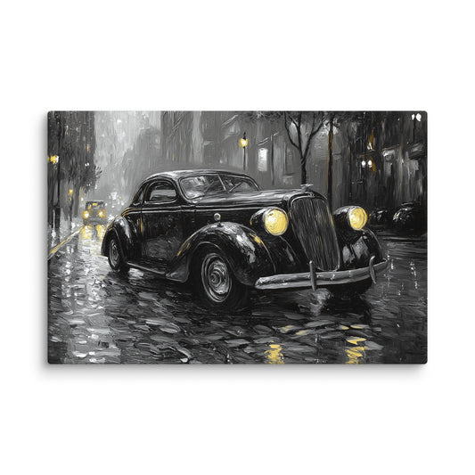 Tableau Voiture Vintage Noir et Blanc : Nuit Pluvieuse