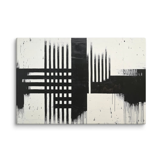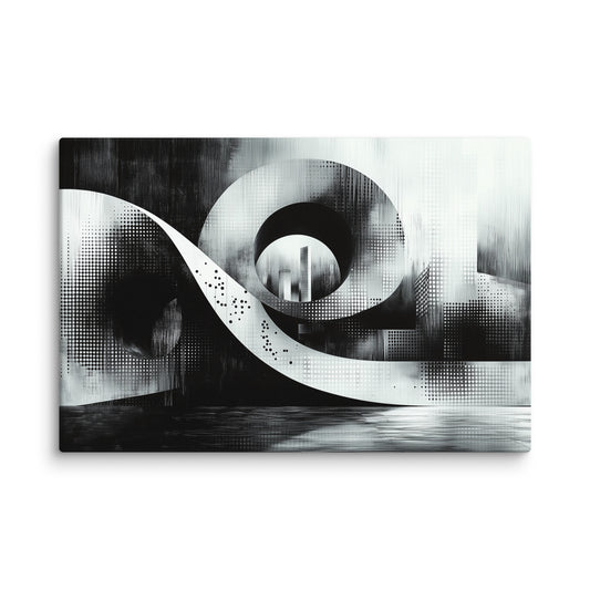 Tableau Peinture Huile Noir et Blanc : Géométrie Ondulatoire