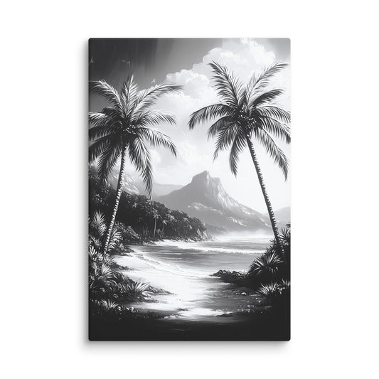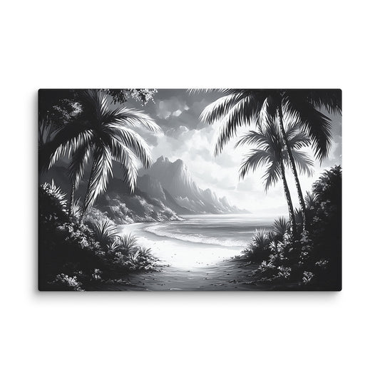 Tableau Tropical Noir et Blanc : Hawaï Monochrome