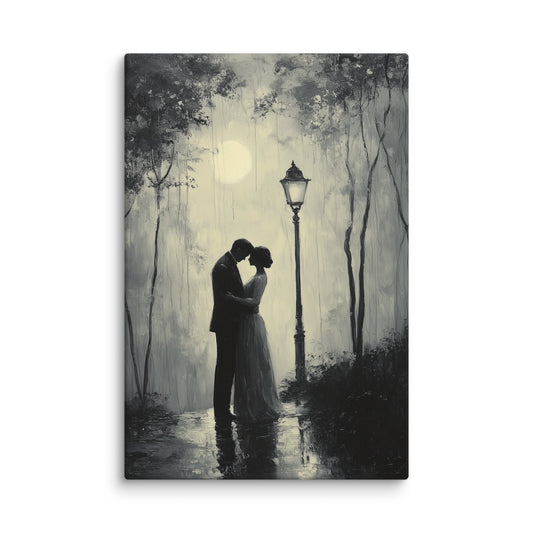 Tableau Noir et Blanc Amour : Valse sous le Réverbère
