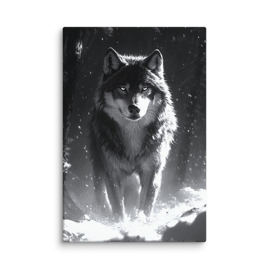 ⚡️ Promo ⚡️Tableau Loup Noir et Blanc : Gardien de l'Hiver
