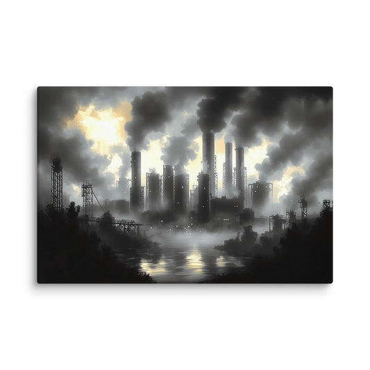 ⚡️ Promo ⚡️Tableau Noir et Blanc Industriel au Crépuscule